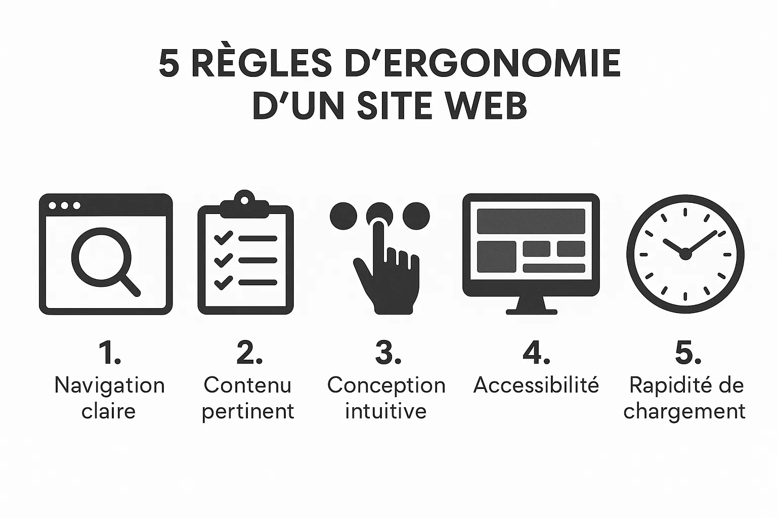 - Les piliers d'une bonne ergonomie sont : navigation claire, hiérarchie visuelle, lisibilité et cohérence graphique.